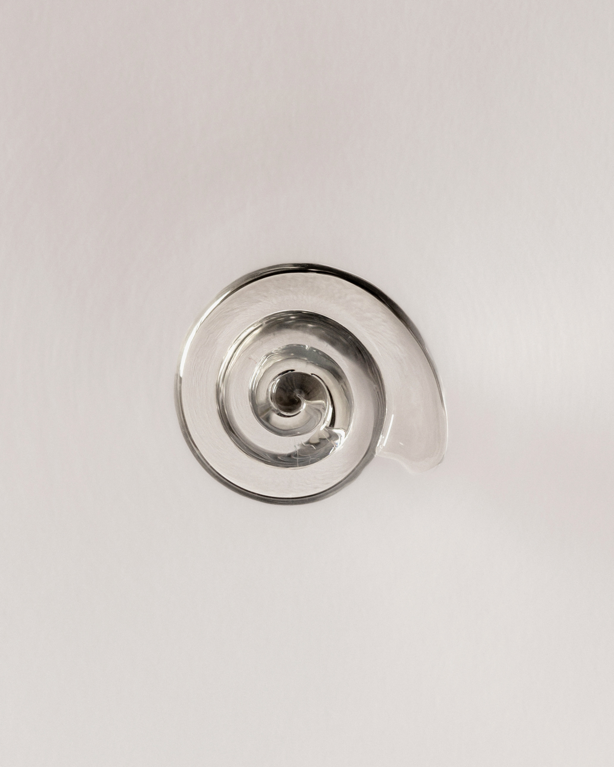 The Eddy Pull was born from a personal fear of snails – and a determination to transform it. Designed by Flawk’s founder Ashley Law, this one-of-a-kind pull is made from hand-blown glass, twisted into a delicate spiral. Each Eddy is unique in shape and texture, and can be used on drawers, doors or cabinetry.