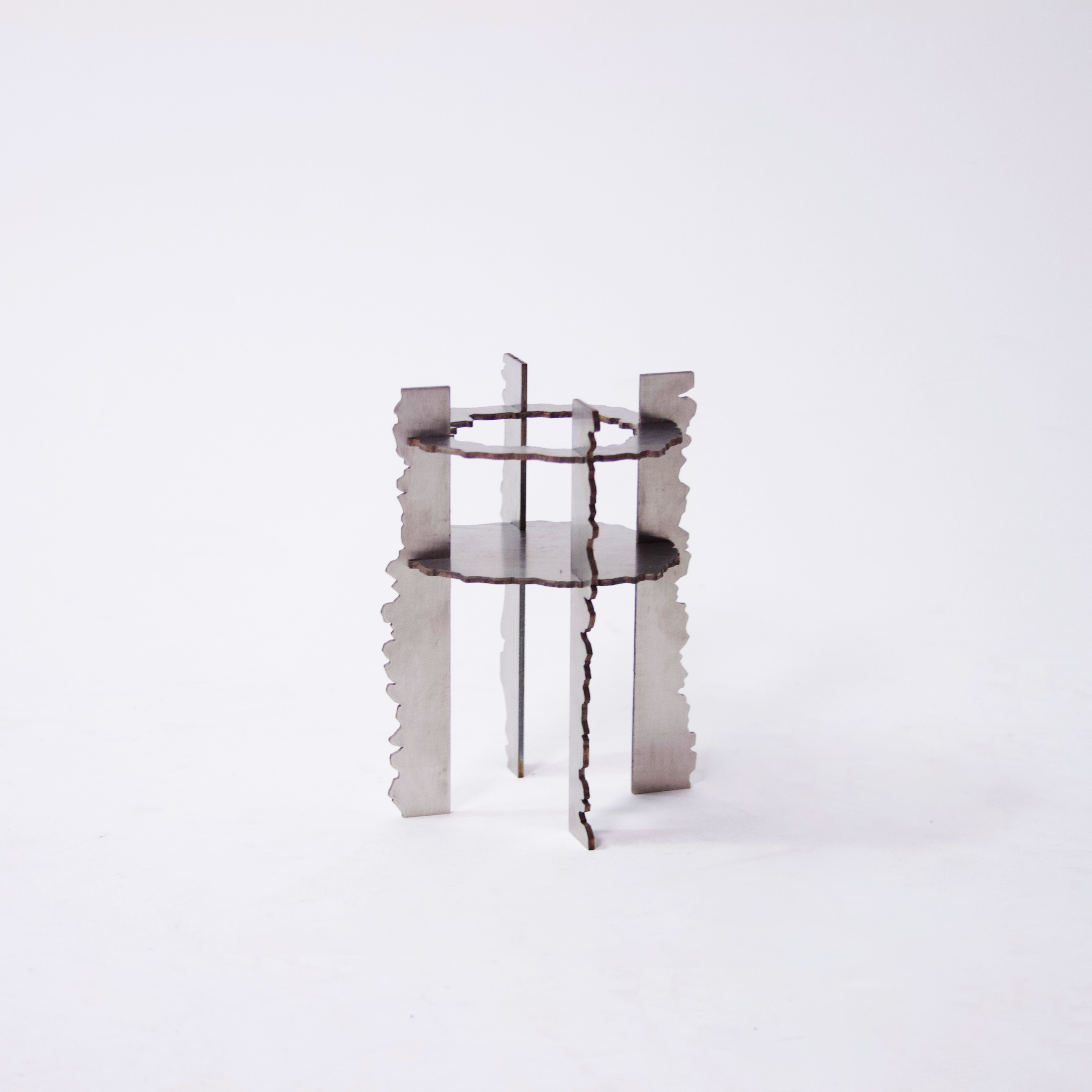 Created by Louis Barrett, this stainless steel candle holder emerged from his time in Oaxaca, Mexico, where he made tracings of native ceiba trees. Designed to pair closely with the Ceiba Candle, the holder’s irregular, stepped edges echo the candle’s textured surface, creating a visual dialogue between the two. While conceived as a companion piece, it can also be used with other tall candles, bringing a sculptural presence to the table or shelf.