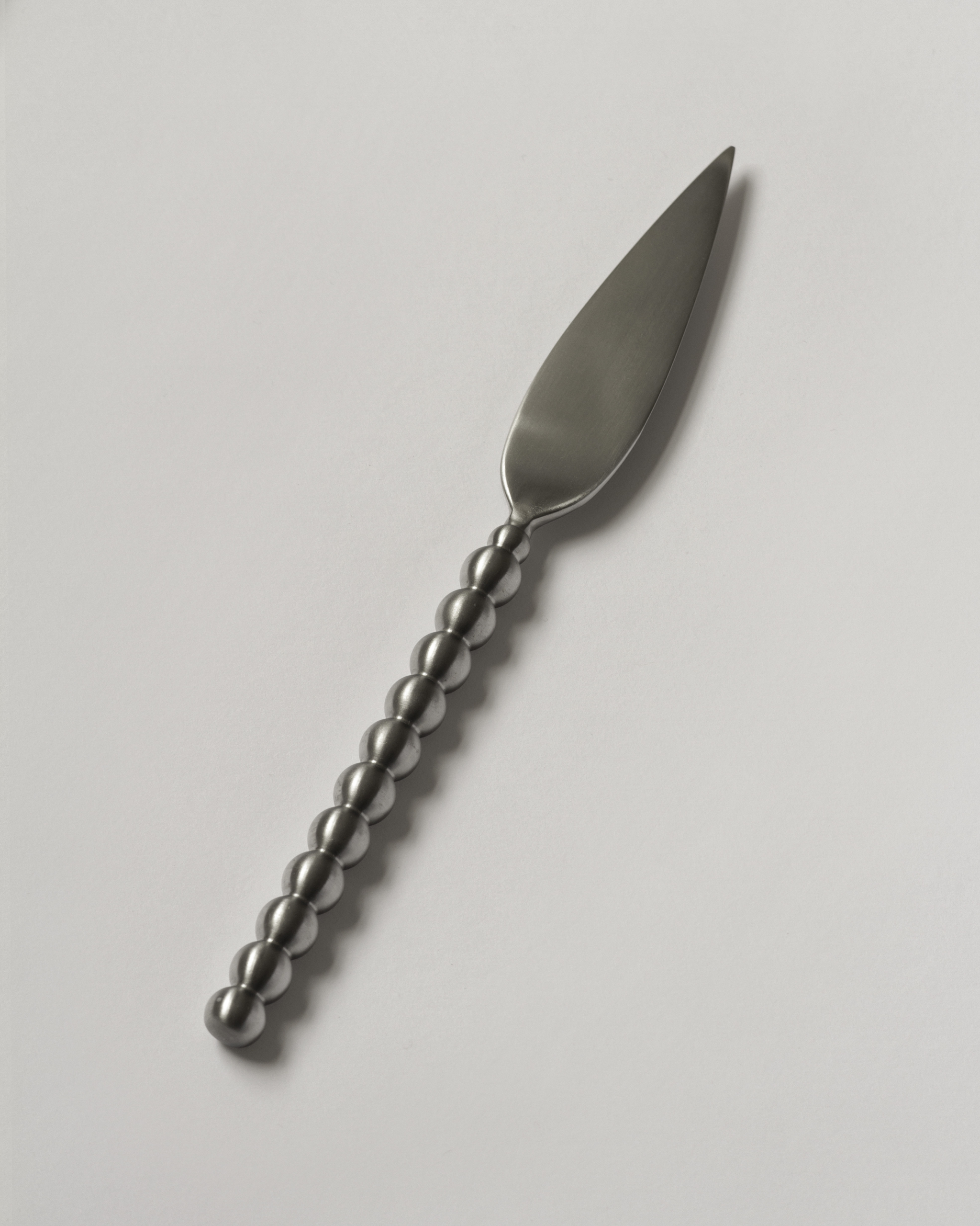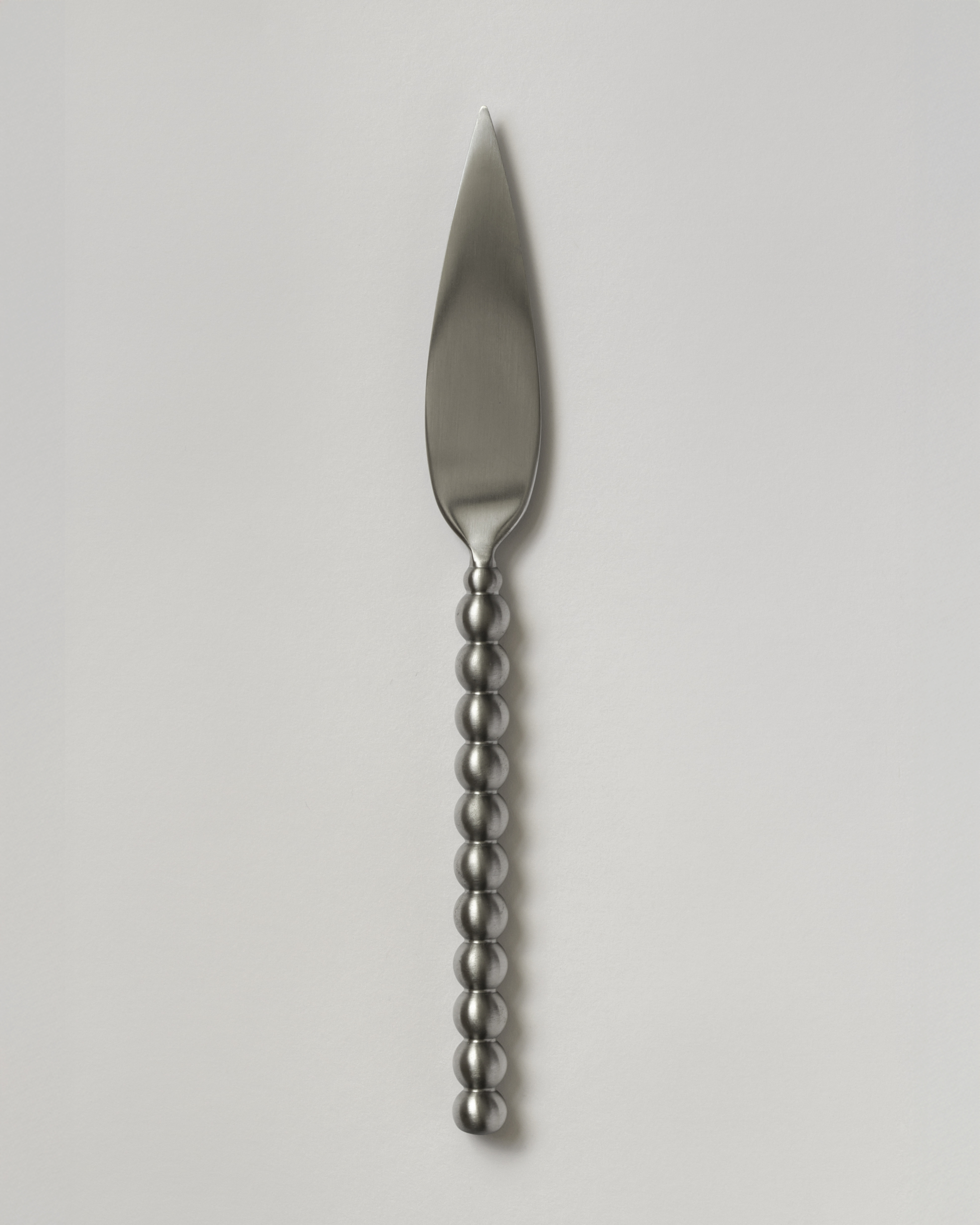 Bobbie is a butter knife with personality and is perfect for mornings around the dining table. Crafted from brushed stainless steel, it features a beaded handle and teardrop-shaped blade designed for smooth spreading. Pair with toast, croissants, and jam.