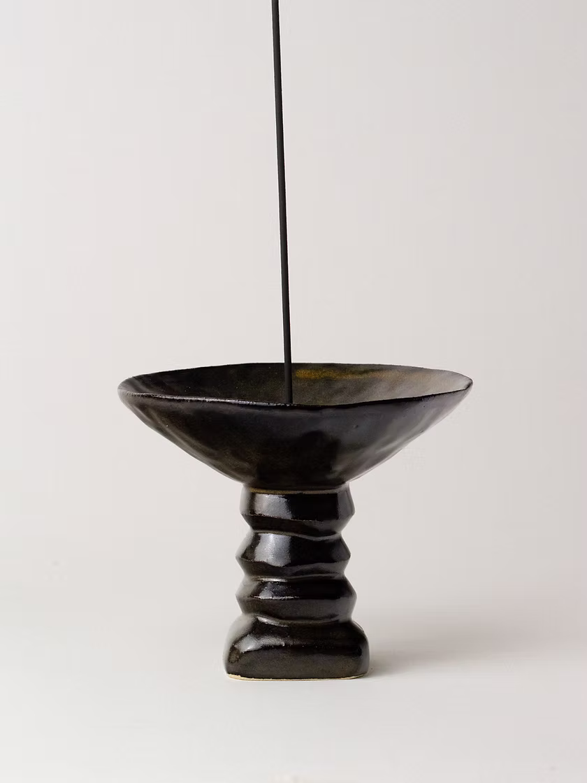A hand-pinched and carved stoneware incense holder, finished in a dark brown glaze by PPP LAB. Its gently irregular form has subtle variations arising from the making process.